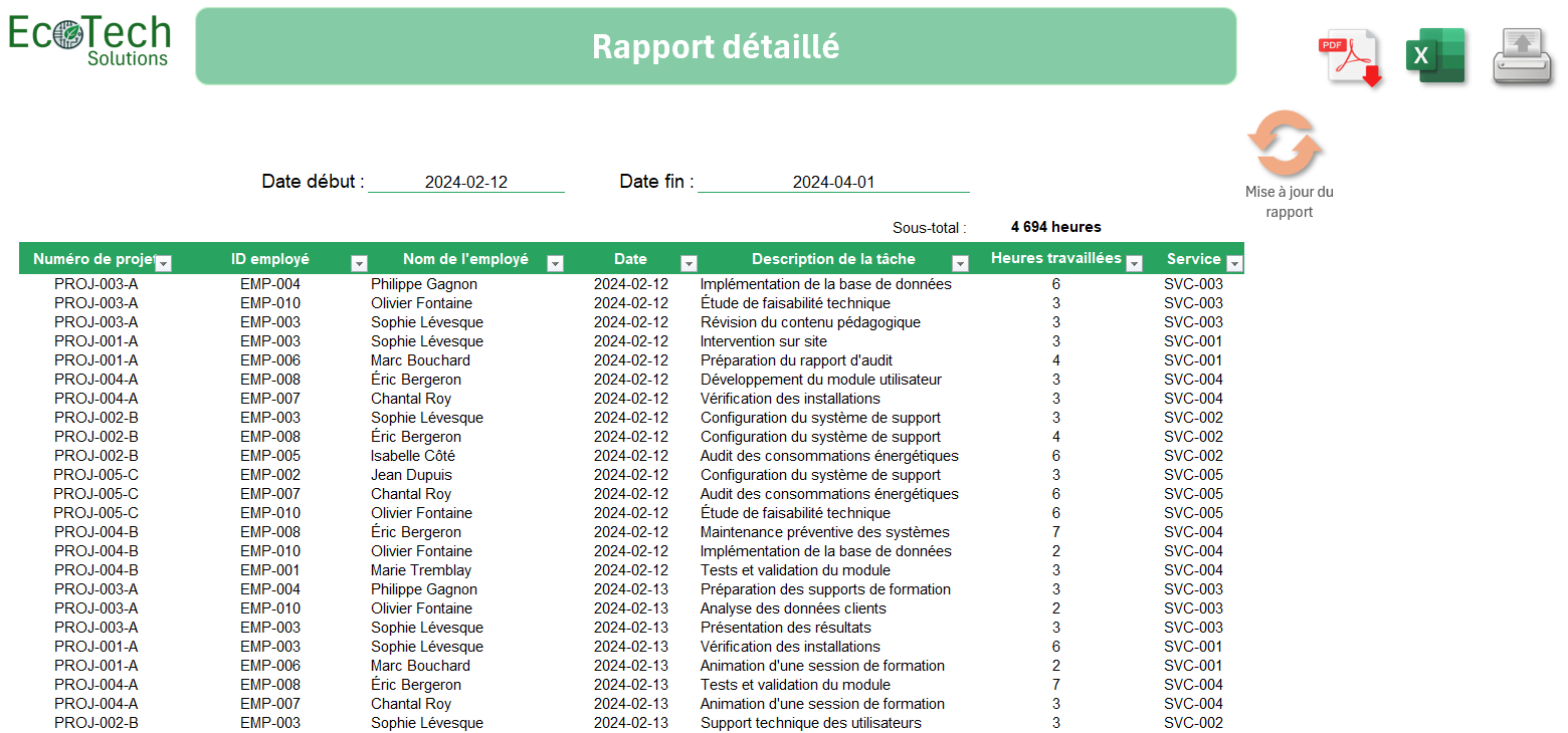 Selon les besoins, d’autres fonctionnalités peuvent être ajoutées : graphiques dynamiques, alertes, intégration avec Outlook, options de filtre avancées, ou même protection par mot de passe.