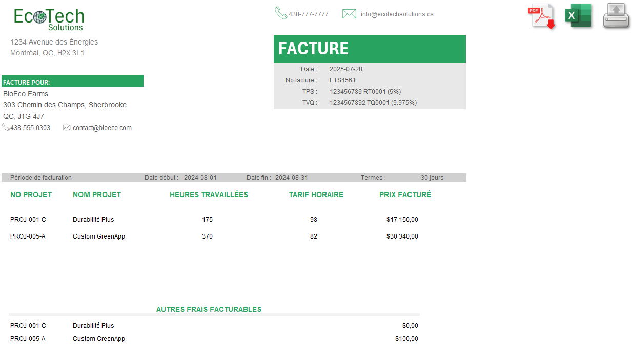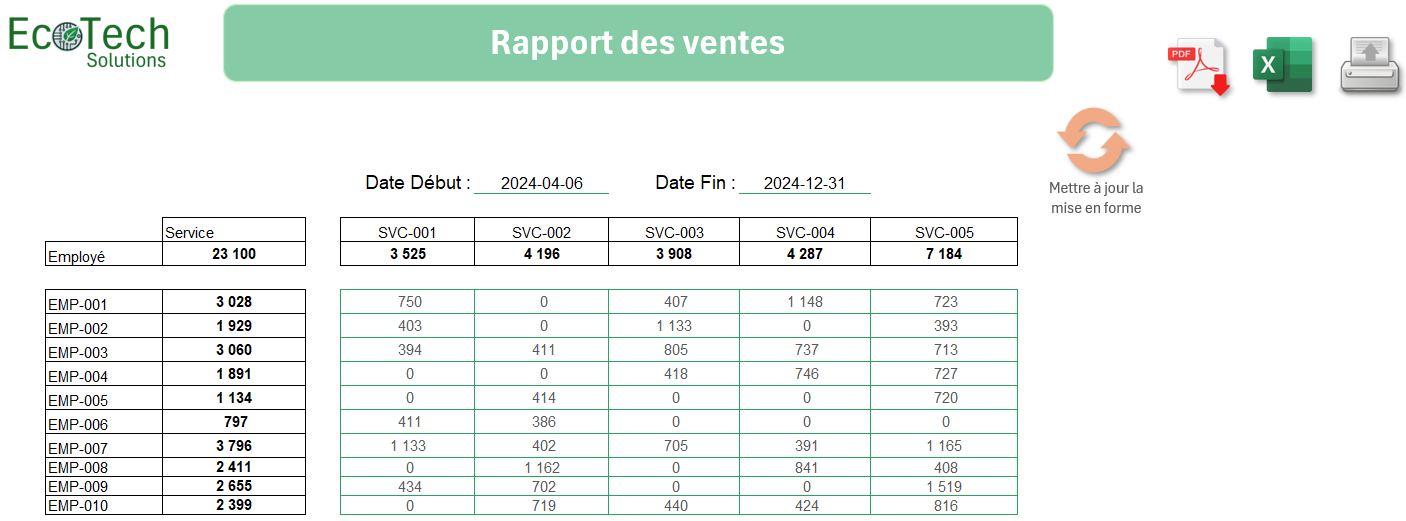 L’utilitaire permet de générer automatiquement des rapports ou des tableaux de bord selon les données saisies. Ceux-ci peuvent être exportés en PDF ou imprimés pour distribution.