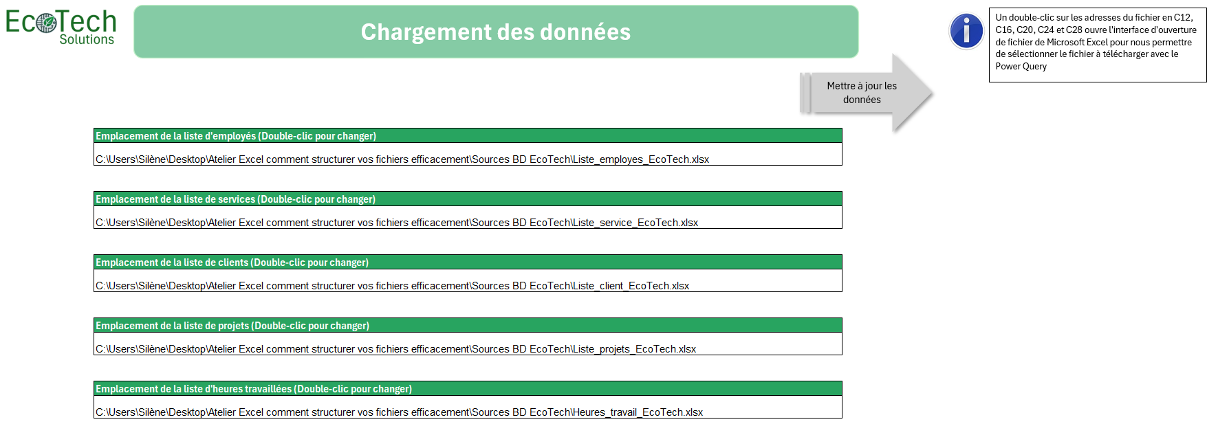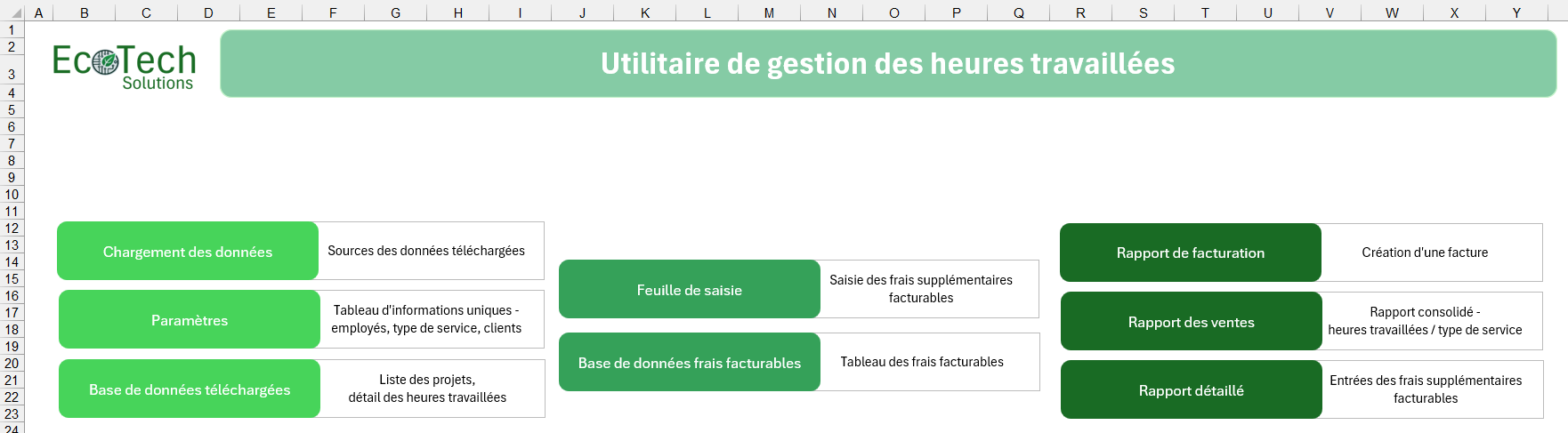 Un bon utilitaire Excel inclut une interface de navigation intuitive avec des menus, des boutons ou des onglets interactifs. Cela permet à l’utilisateur de passer facilement d’une section à une autre sans se perdre dans les feuilles Excel classiques.